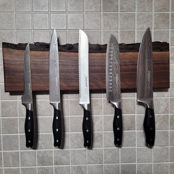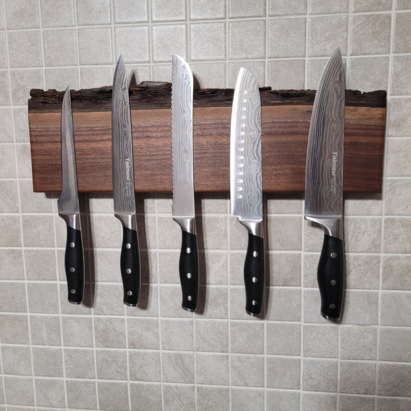 Black Walnut Full Live Edge Magnetic Knife Holder (D)